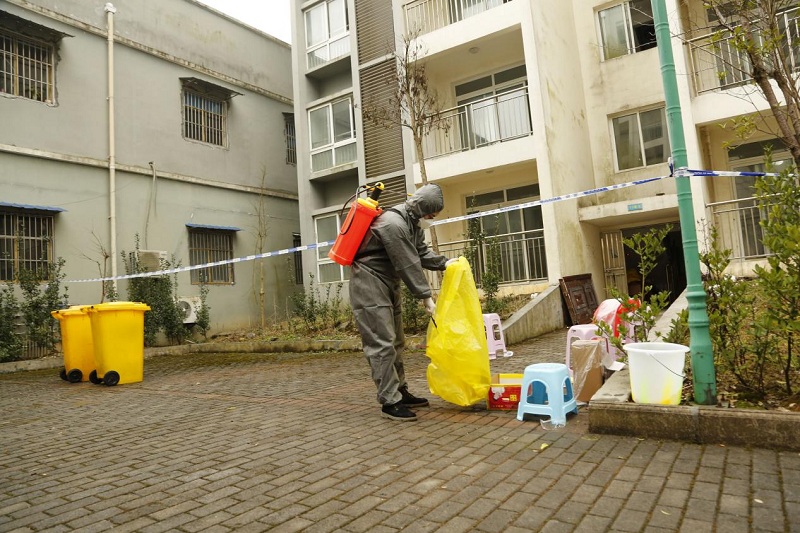 (酉州實業集團職工消毒清理垃圾中 汪登平攝)