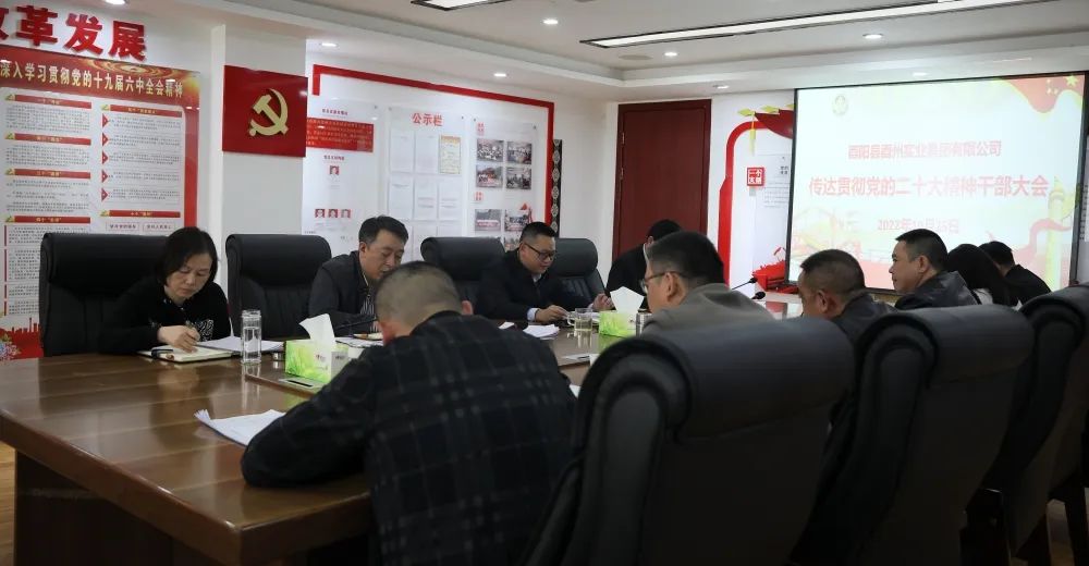 10月25日,酉州實(shí)業(yè)集團(tuán)召開(kāi)傳達(dá)貫徹中國(guó)共產(chǎn)黨第二十次全國(guó)代表大會(huì)精神干部大會(huì)。會(huì)議傳學(xué)習(xí)了中國(guó)共產(chǎn)黨第二十次全國(guó)代表大會(huì)、中國(guó)共產(chǎn)黨第二十屆中央委員會(huì)第一次全體會(huì)議精神。集團(tuán)公司班子成員及各部室、子公司負(fù)責(zé)人參加。
