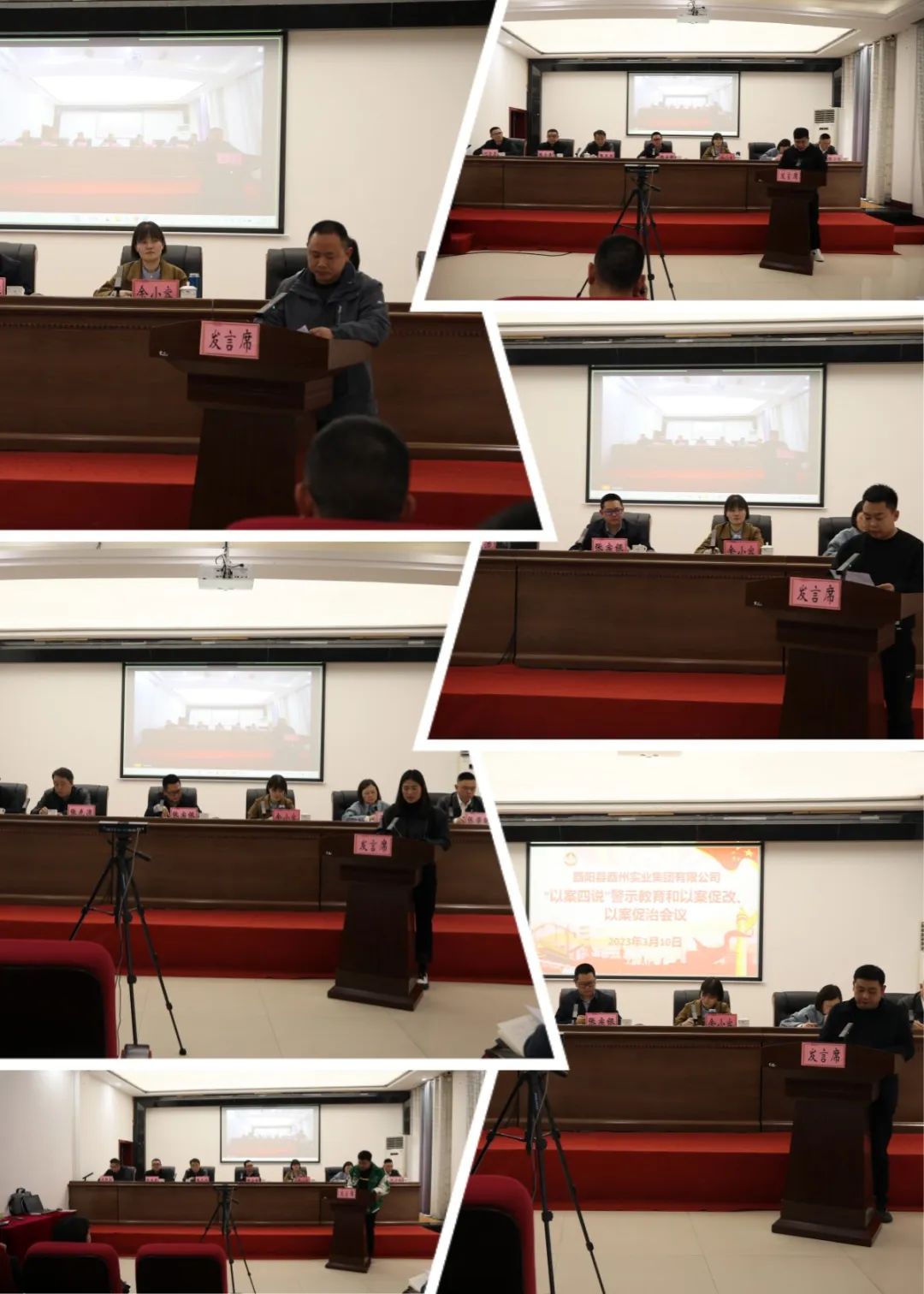 【3月12日訊 陳鵬】 3月10日下午,酉州實業集團組織召開“以案四說”警示教育和以案促改、以案促治專題會,集團公司全體干部職工參加會議,會議由集團黨總支書記、董事長張宗銀主持。大會傳達學習了酉陽縣國資金國企系統“以案四說”警示教育和以案促改、以案促治會議精神;集中觀看了警示教育專題片《官商勾結的國企碩鼠——重慶市華茂投資責任有限公司原董事長楊春曉案件警示錄》;通報了集團公司前階段開展以案促改、以案促治工作的情況和制定完善的制度規定。集團黨總支委員、副總經理分別進行了以案說紀、以案說法、以案說德、以案說責;班子成員、部分黨員、關鍵崗位職工結合自身實際談認識談感受。