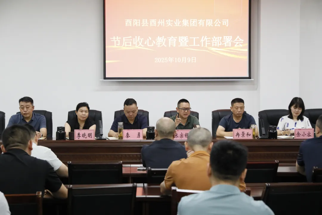 10月9日,節(jié)后首個工作日,酉州實業(yè)集團組織召開節(jié)后收心教育暨工作部署會,集團全體領導班子,各部室、子公司主要負責人參加會議。