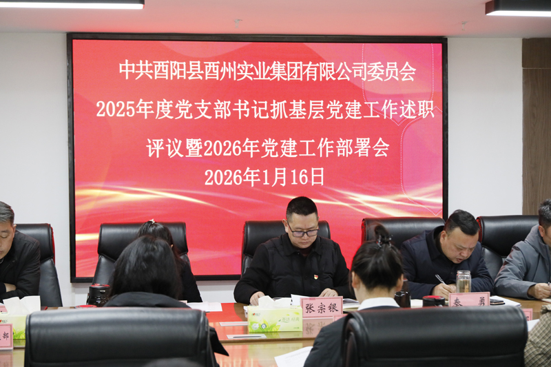 2026年1月16日,酉州實業集團黨委召開2025年度黨組織書記抓基層黨建述職評議暨2026年黨建工作部署會議。集團黨委書記張宗銀主持會議并講話,黨委委員、支部書記出席會議,各支部委員列席會議。